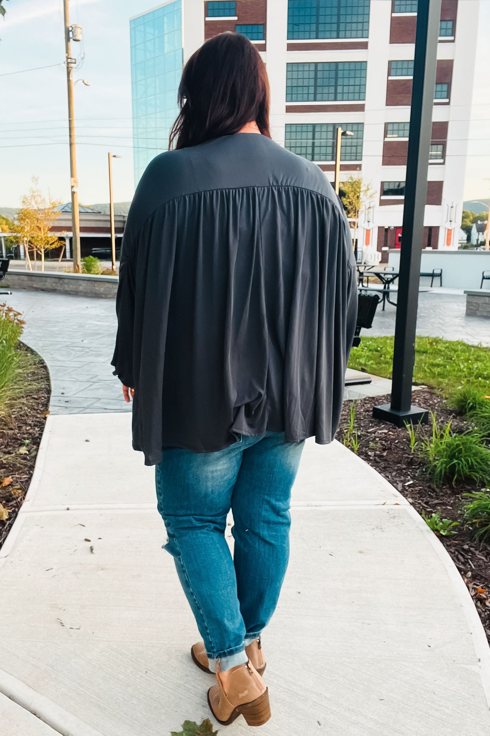 Casual Chic Charcoal V Neck Yoke Modal Knit Top